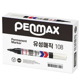 펜맥스 롱유성매직 108 12p, 흑색, 12개