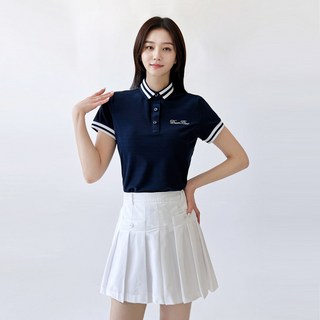 ✅9. 다운블로우 여자 골프웨어 배색 라인 카라 반팔 티셔츠 95012