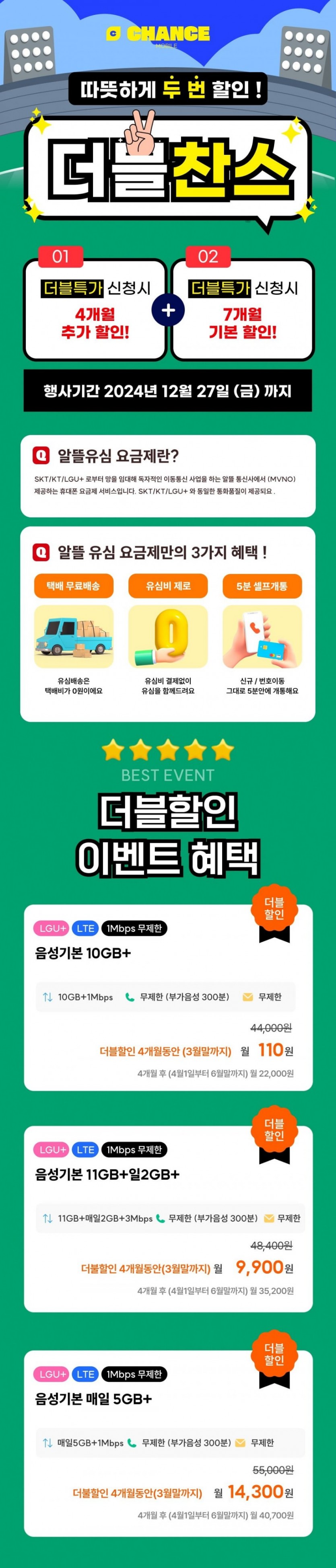 찬스모바일 초특가 작성자 정보 관리자 작성 작성일 2024.12.23 19:53 컨텐츠 정보 1,986 조회 0 추천 0 비추천 목록 본문 찬스모바일쉽고 빠른 개통, 통신비 절감의 찬스!https://chancemobile.co.kr/view/distributor/phone_plan_distributor.aspx?poscd=bcd188635790aefcd14ba77b3f85b1c0 알뜰폰 10GB+1MPS 3월30일까지 100원알뜰폰 11G+2GB+3MBPS 3월30일까지 9900원 . 100기가+5mps . 14000원 . 3월까지쓰고 4월에 번호이동 하심 될거 같네요.그리고 테더링 필요하신분은 엘지 특성상 E심 섞어서 하는 것도 추천 드립니다. E심 개통도 가능하다고합니다.#viral#fyp#tiktok#comedy 0 추천 0 비추천 SNS 공유 관련자료 링크 https://chancemobile.co.kr/view/distributor/phone_plan_distributor.aspx?poscd=bcd188635790aefcd14ba77b3f85b1c0 816 회 연결 이전 리쏘 영원씨 안마의자 작성일 2025.02.08 21:35 다음 “나야, 흑백요리사” 출연진들의 식당 리스트 총정리! 작성일 2024.10.11 16:23 댓글 0 등록된 댓글이 없습니다. 로그인한 회원만 댓글 등록이 가능합니다. 목록
