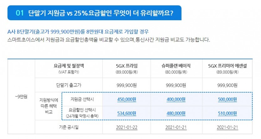 공시지원금을 통해 단말기 구매 할인 혜택이 큰지, 요금제 할인 혜택을 받는게 큰지 꼼꼼하게 비교해보고 선택하시기 바랍니다.